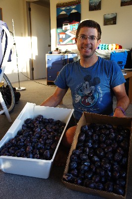 We still ended up cycling home with about 42 pounds of plums (well, Gili carried them, of course). It wasn’t a “crisis” like we had with the cherries, but I was still happy to do a few baking experiments. I also gave quite a few plums to Mari and her family, since without her it wouldn’t have happened.