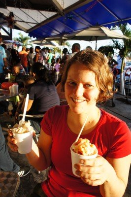 The Panama canal is one of the first things that come to mind when thinking about Panama. It was quite impressive to see a huge boat crossing the narrow gap in the Miraflores Lock. After two days of foot exploration, the time had come – it was time to take the bikes out of the boxes… After Gili had put them back together we took them out for a spin. We passed through some rougher neighborhoods where kids were bathing in plastic pools to keep off the heat. We were even splashed with buckets of water, which was very refreshing… We rode to Amador, where there is a nice cycling trail near the water. But the traffic was insane, that is – kids on bikes, riding and stopping wherever they pleased.