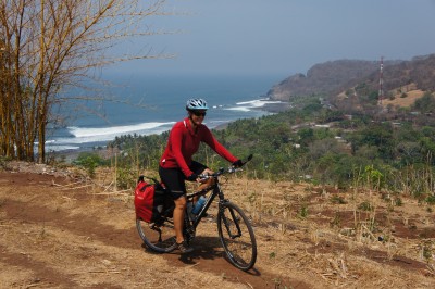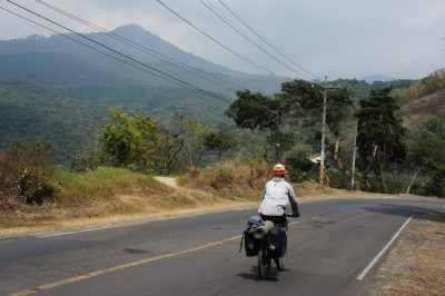 The cycling was not the highlight of our time in El Salvador, as we mainly followed one main road. What was nice about the ride though was that the traffic was light and everywhere there were wide shoulders, the best we have seen in any country, often wide enough for us to ride side by side. In the mornings we witnessed the “water march”, people and sometimes children walking to or back from filling up water from a well or the river, invariably carrying the heavy water jugs on their heads. People were also constantly carrying wood logs or stacks of kindling, often on their backs, for cooking purposes.