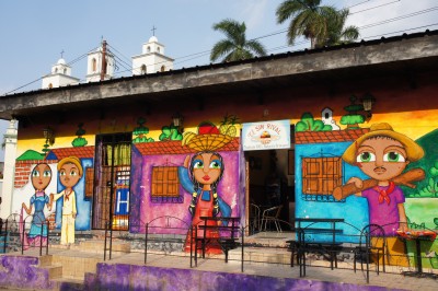 On Sunday we left Juayua, again sadly saying goodbye to a nice place, and continued climbing. We passed a few lively towns decorated with lovely colourful murals. We enjoyed the food festival in Ataco before dropping down to Ahuachapan, our last stop in lovely El Salvador before crossing to Guatemala.