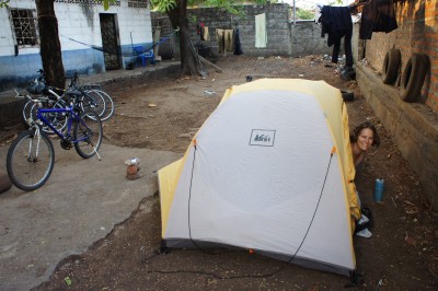 It was probably one of the longest nights of our life. We set up our tent in the middle of the closed courtyard, and the problem wasn’t the 20 armed cops and soldiers around us, who were carrying loaded M-16’s, they were friendly enough, the problem was the heat. Somehow the night passed and the morning came and we could finally carry on.