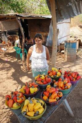 In stark contrast, on our second day of riding we came across a row of flimsy tin shacks on the side of the road, the worst we have ever seen. Everyone was selling colourful maranyones, the cashew nut fruit. One family invited us for maranyon juice and freshly made mango jam and told us their story. Apparently the 87 families were all living on a hill not far from there. One day someone bought the property and even though they had lived there for 16 years they had no legal title and were forcefully evicted. They are waiting for a legal action supposedly happening in June, but I don’t know if it has much hope.