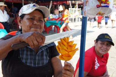 Our time in El Salvador coincided with Semana Santa (the holy week of Easter). This week is serious business in Latin America and almost everyone had the week off. It meant that places were generally crowded, but it also meant a lot of interesting activity. On Playa El Cuco, where we spent the first part of Semana Santa, there were hundreds of stalls right on the beach selling colourful bowls of shaved ice and flower shaped mangos on a stick, complete with chilli and Worcestershire sauce. There were many locals there all going into the ocean with their clothes on, which seemed to be the way to go in El Salvador.