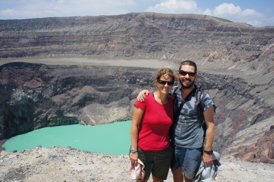 One day we went to a nearby waterfall for a refreshing swim with a local guy named Carlos. The next day we went to Volcan Santa Ana by public transport. Although not too far by distance it took us three and a half hours to get there. We would have never made it back by public transport, but luckily we met a Chinese couple who were driving back to Juayua. Their car did not have seats, the driver, a Chinese guy named Elvis drove fast and braked abruptly, but we made it back in an hour. The hike to the volcano took four hours and we peered into the crater to see a beautiful turquoise lake.