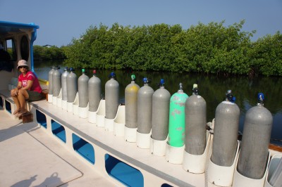 For many years we had been hearing from fellow travelers about the Carribean island of Utila. Normally that would scare us away, since with such word of mouth it was bound to be a tourist hang out, but in this case it was worth it for the excellent and cheap diving. We took an advanced course, which included some new excitements, such as night diving, and diving to the 30m deep Haliburton wreck, which was sunk for diving purposes, and now sports various artifacts, such as a few bicycles and a laptop. We enjoyed the intensely colourful coral, the warm water which makes it possible to dive without a wetsuit, and a price tag of $25 per dive (gear and boat ride included), but were left baffled by the fact that most instructors and dive masters take every opportunity to smoke.