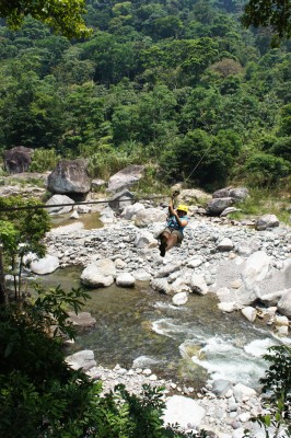 Our next stop was the Jungle River Lodge, set right on the shore of the Rio Cangrejal, with its many sculpted granite boulders. Every day we took a long swim in the river, including some cliff jumping and climbing. All over Central America canopy tours are becoming popular. We finally succumbed to curiosity and took a ride, which involved zooming down a steel cable, high in the trees, and over the river. The short walk was also interesting, when we almost stepped on a bright red coral snake, apparently highly venomous. The next day we rafted our way down the Rio Cangrejal, admiring the rock formations on the way, and (of course) dropping a few waterfalls.