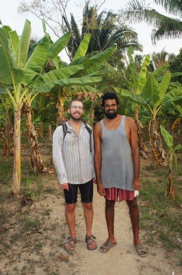 He kindly invited us over and offered us many delicious treats during our short stay. First, sweet elongated coconuts, then the best fish soup we have had, made from fish he had caught in the river, and for a late night treat fried plantains from his farm. He also took us on a short tour showing us around his farm, the different trees they grow and the animals. In the morning we were invited for eggs and fresh flour tortillas, and were even given two souvenirs, a pot holder he knitted and a key chain of Belize.